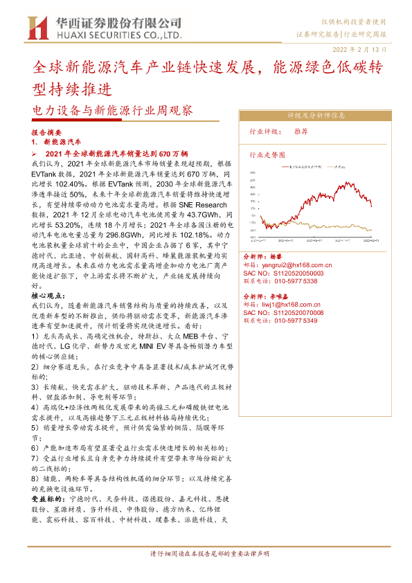 【华西证券】【20220213】电力设备与新能源行业周观察:全球新能源汽车产业链快速发展,能源绿色低碳转型持续推进-16页