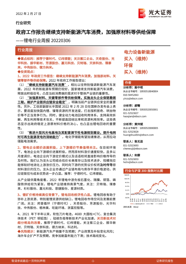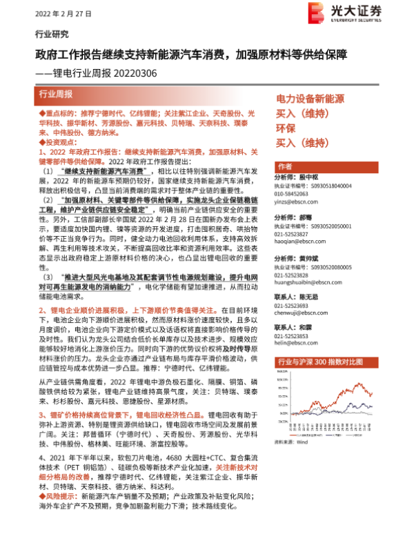 【光大证券】【20220306】20220306-光大证券-锂电行业周报:政府工作报告继续支持新能源汽车消费,加强原材料等供给保障-9页