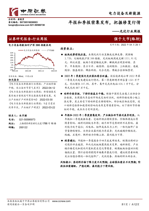 【中原证券】【20220429】光伏行业周报:年报和季报密集发布,把握修复行情-12页