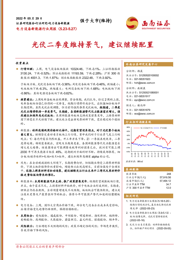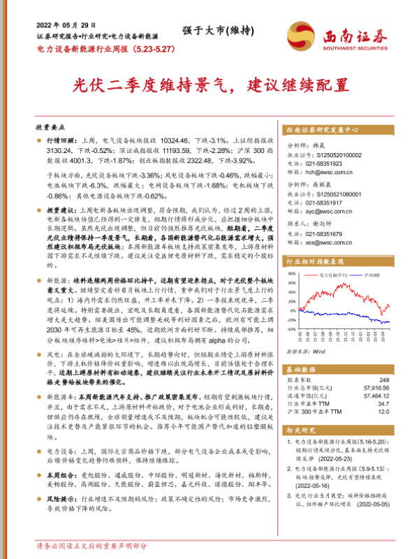 【西南证券】【20220529】电力设备新能源行业周报:光伏二季度维持景气,建议继续配置-33页