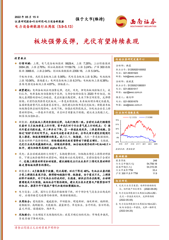 【西南证券】【20220515】电力设备新能源行业周报:板块强势反弹,光伏有望持续表现-30页