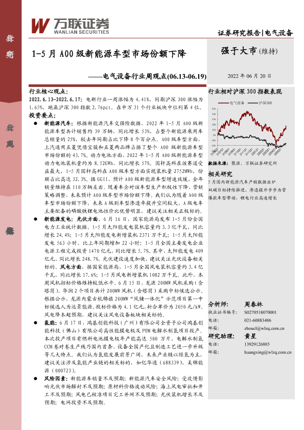 【万联证券】【20220620】20220620-万联证券-电气设备行业周观点:1-5月A00级新能源车型市场份额下降-11页