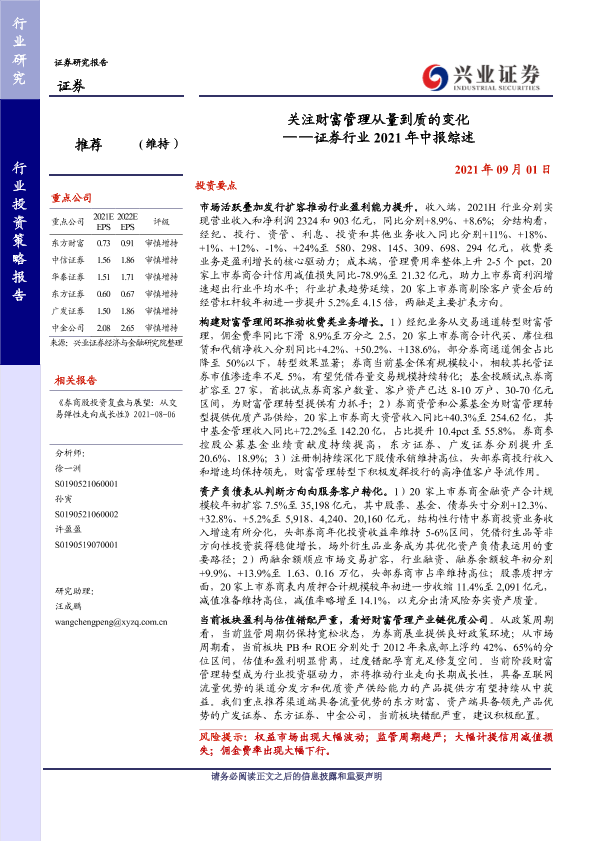【兴业证券】【20210901】证券行业2021年中报综述:关注财富管理从量到质的变化-23页