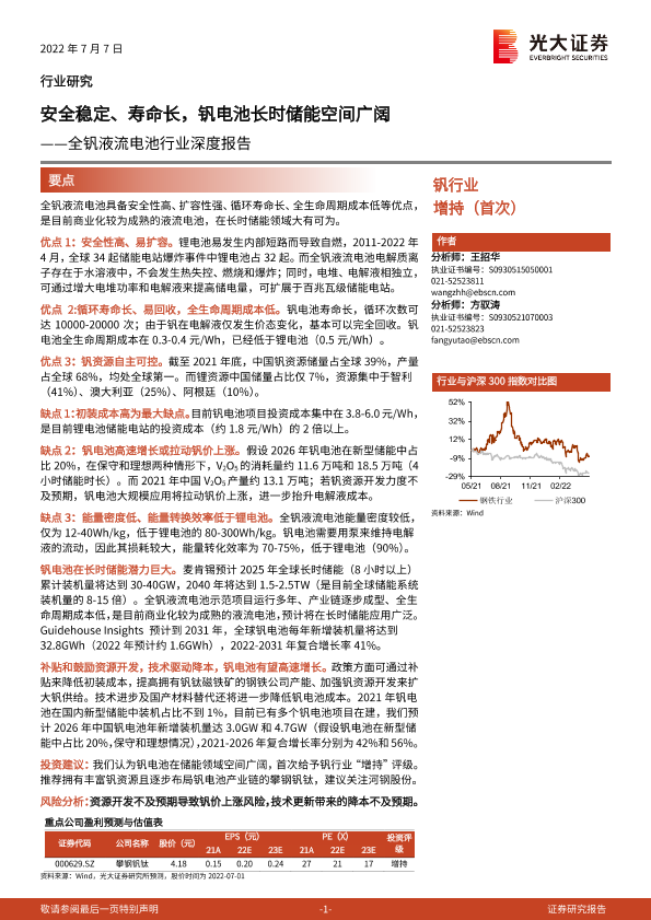 【光大证券】【20220707】安全稳定、寿命长,钒电池长时储能空间广阔——全钒液流电池行业深度报告-34页