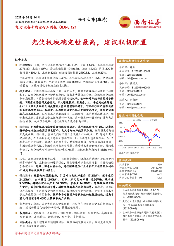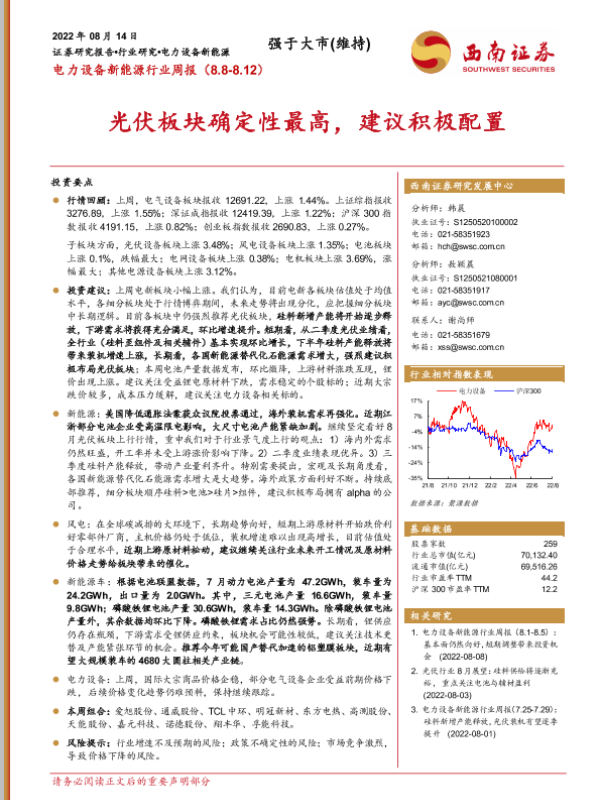 【西南证券】【20220814】电力设备新能源行业周报:光伏板块确定性最高,建议积极配置-34页