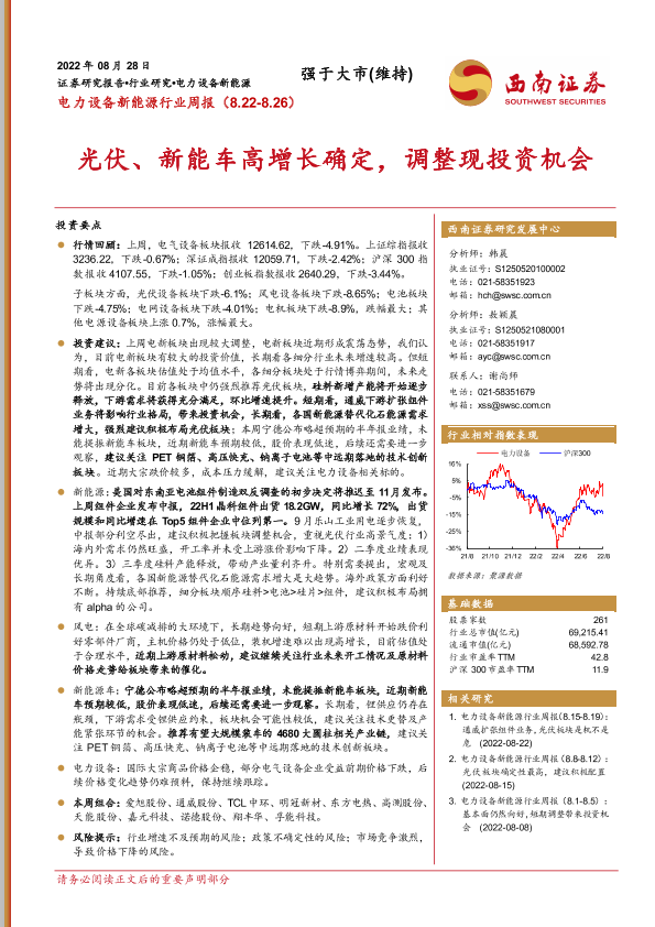 【西南证券】【20220828】电力设备新能源行业周报:光伏、新能车高增长确定,调整现投资机会-34页