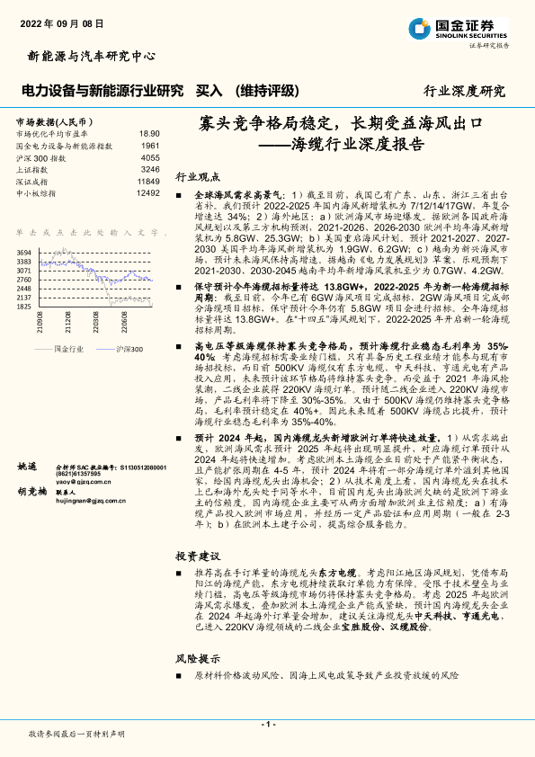 【国金证券】【20220908】寡头竞争格局稳定,长期受益海风出口——海缆行业深度报告-24页