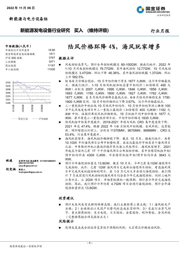 【国金证券】【20221106】20221106-国金证券-新能源发电设备行业研究:陆风价格环降4%,海风玩家增多-13页