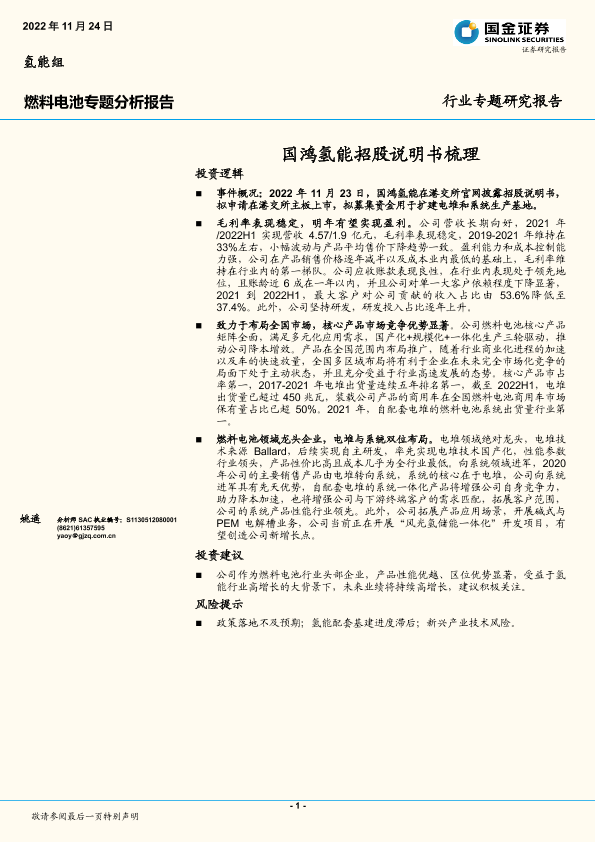 【国金证券】【20221124】20221124-国金证券-燃料电池专题分析报告:国鸿氢能招股说明书梳理-20页