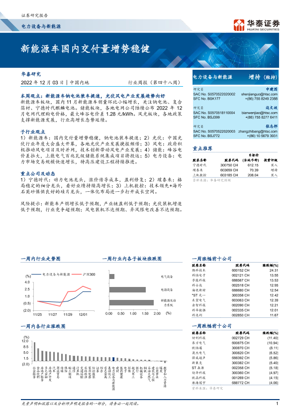 【华泰证券】【20221203】电力设备与新能源行业周报(第四十八周):新能源车国内交付量增势稳健-23页