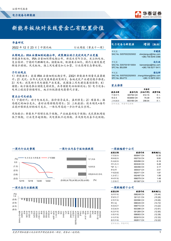 【华泰证券】【20221223】电力设备与新能源行业周报(第五十一周):新能车板块对长线资金已有配置价值-20页