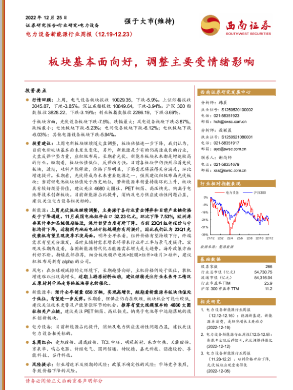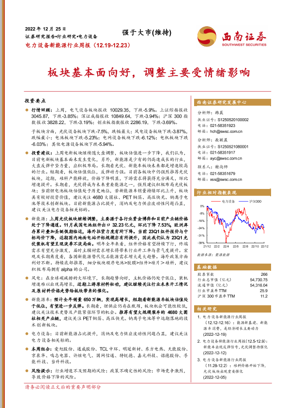 【西南证券】【20221225】电力设备新能源行业周报:板块基本面向好,调整主要受情绪影响-35页