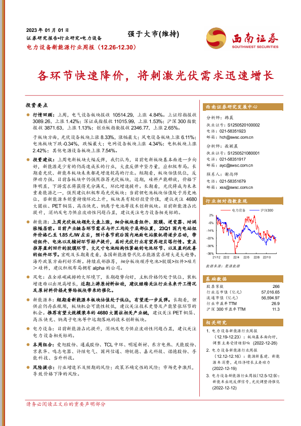 【西南证券】【20230101】电力设备新能源行业周报:各环节快速降价,将刺激光伏需求迅速增长-34页