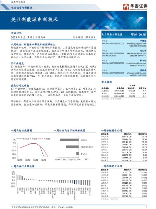 【华泰证券】【20230217】电力设备与新能源行业周报(第七周):关注新能源车新技术-19页