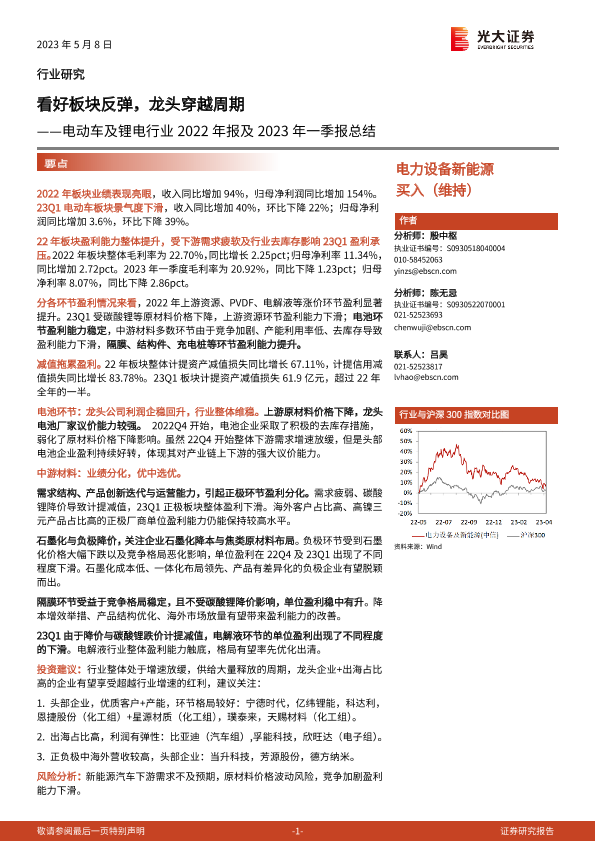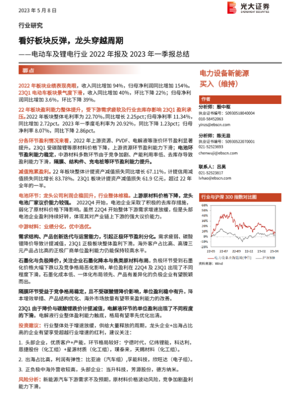 【光大证券】【20230508】电动车及锂电行业2022年报及2023年一季报总结:看好板块反弹,龙头穿越周期-12页