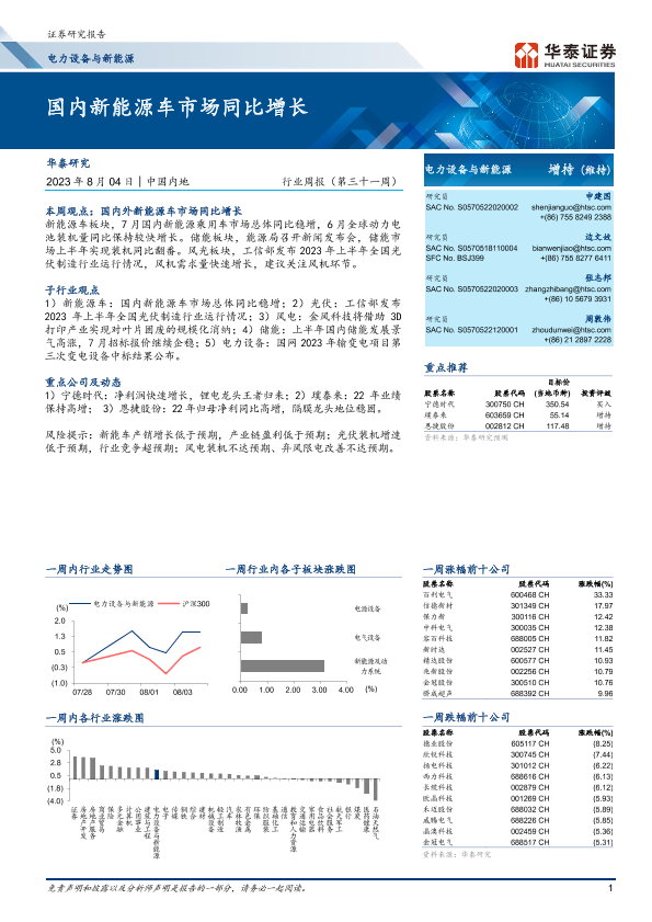 【华泰证券】【20230804】电力设备与新能源行业周报(第三十一周):国内新能源车市场同比增长-21页