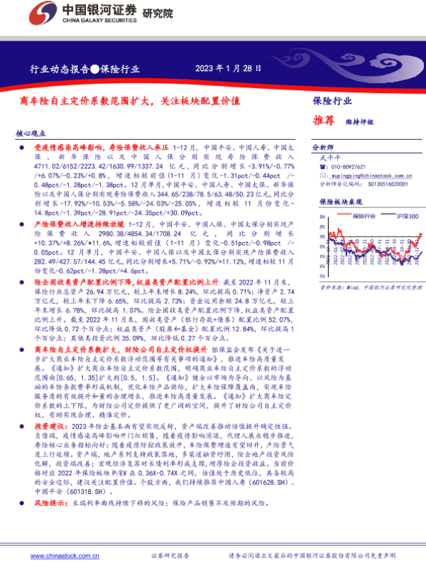 【银河证券】【20230128】保险行业:商车险自主定价系数范围扩大,关注板块配置价值-18页