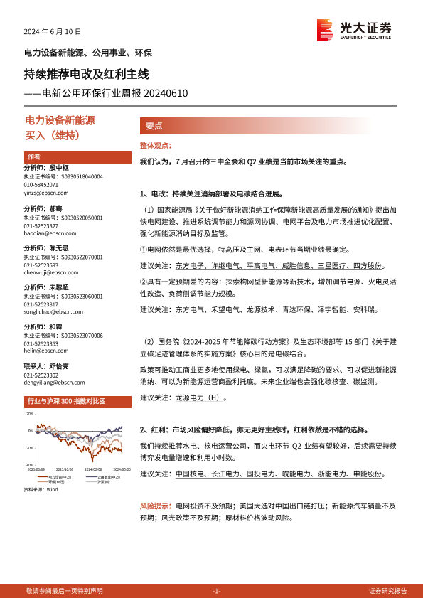 【光大证券】【20240610】电新公用环保行业周报:持续推荐电改及红利主线-11页