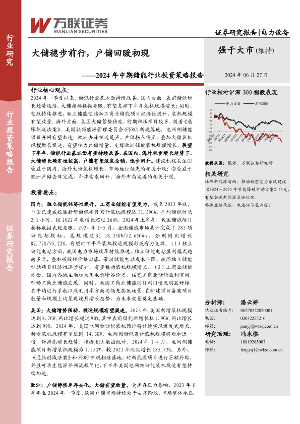 【万联证券】【20240627】2024年中期储能行业投资策略报告:大储稳步前行,户储回暖初现-24页