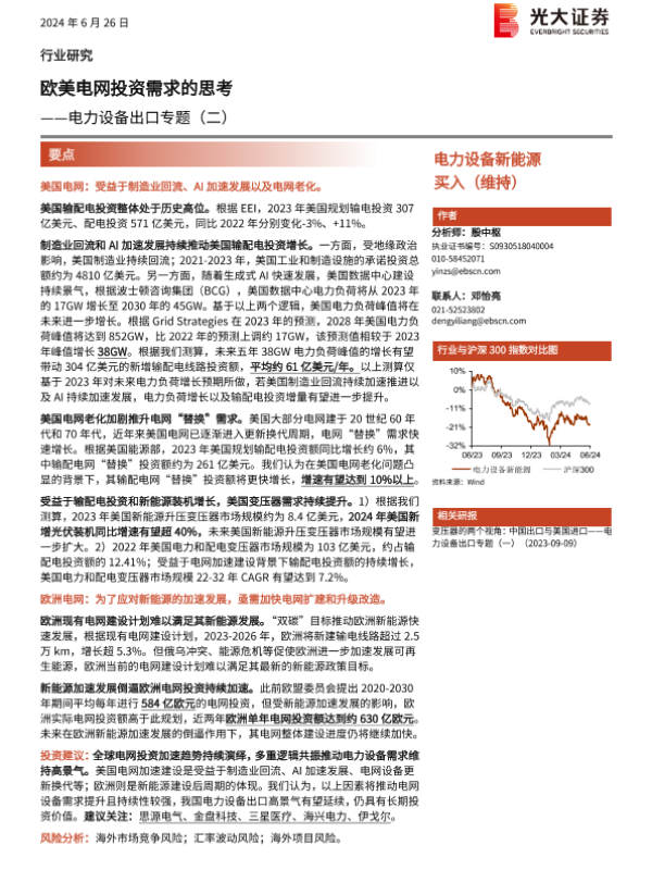 【光大证券】【20240626】欧美电网投资需求的思考——电力设备出口专题(二)-16页