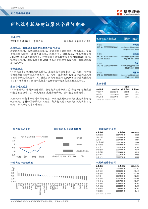 【华泰证券】【20240720】电力设备与新能源行业周报(第二十九周):新能源车板块建议聚焦个股阿尔法-22页