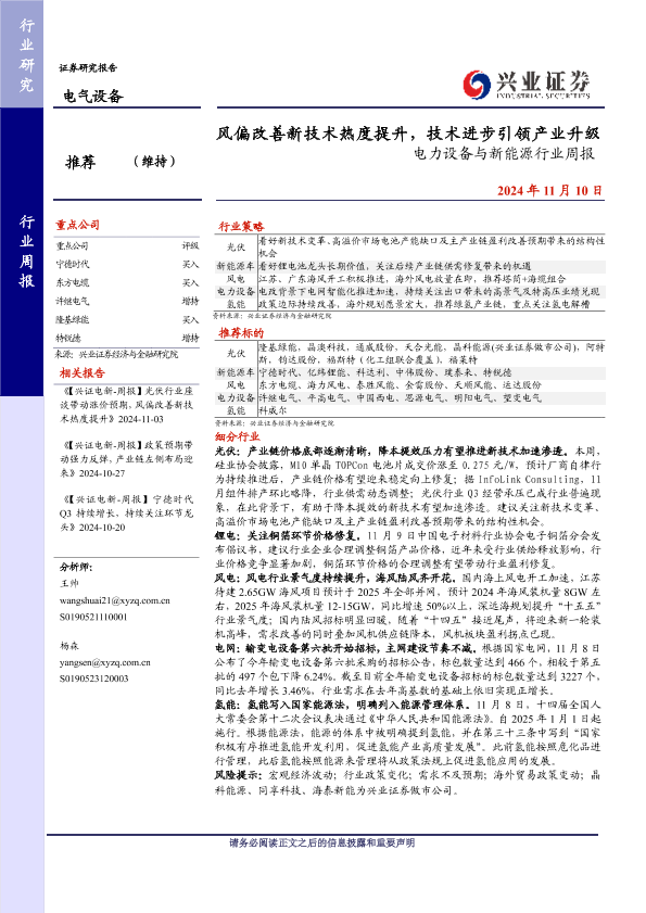 【兴业证券】【20241110】20241110-兴业证券-电力设备与新能源行业周报:风偏改善新技术热度提升,技术进步引领产业升级收-20页