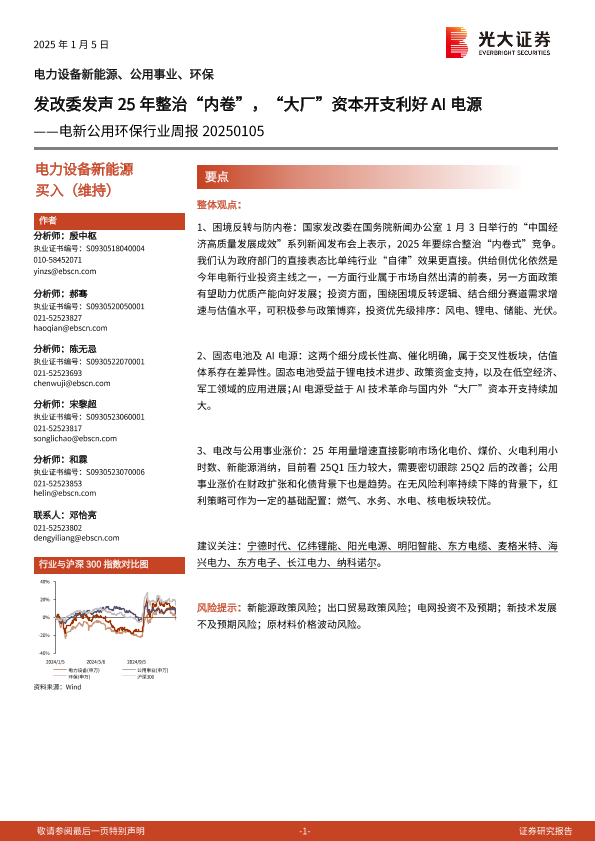 【光大证券】【20250105】电新公用环保行业周报:发改委发声25年整治“内卷”,“大厂”资本开支利好AI电源-11页