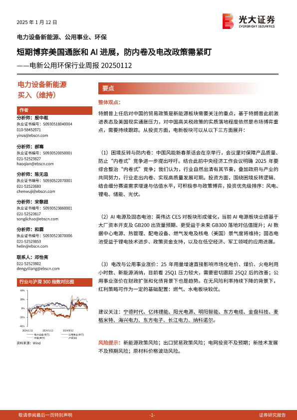 【光大证券】【20250112】电新公用环保行业周报:短期博弈美国通胀和AI进展,防内卷及电改政策需紧盯-11页