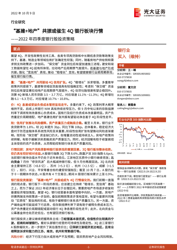 【光大证券】【20221009】银行业2022年四季度银行股投资策略:“基建+地产”共振或催生4Q银行板块行情-19页
