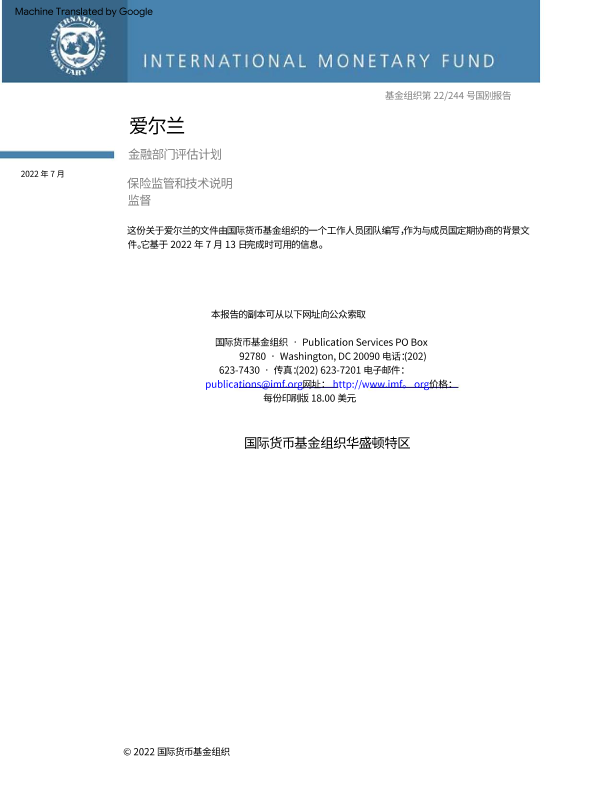 爱尔兰金融 技术说明 国际货币基金组织 保险监管 金融评估