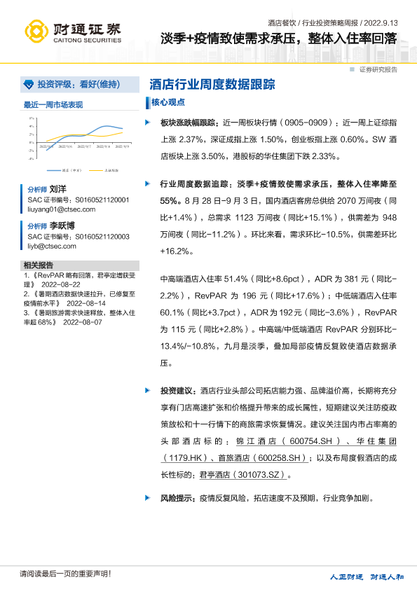 【证券研究报告】【20220913】酒店行业周度数据跟踪:淡季+疫情致使需求承压,整体入住率回落-11页