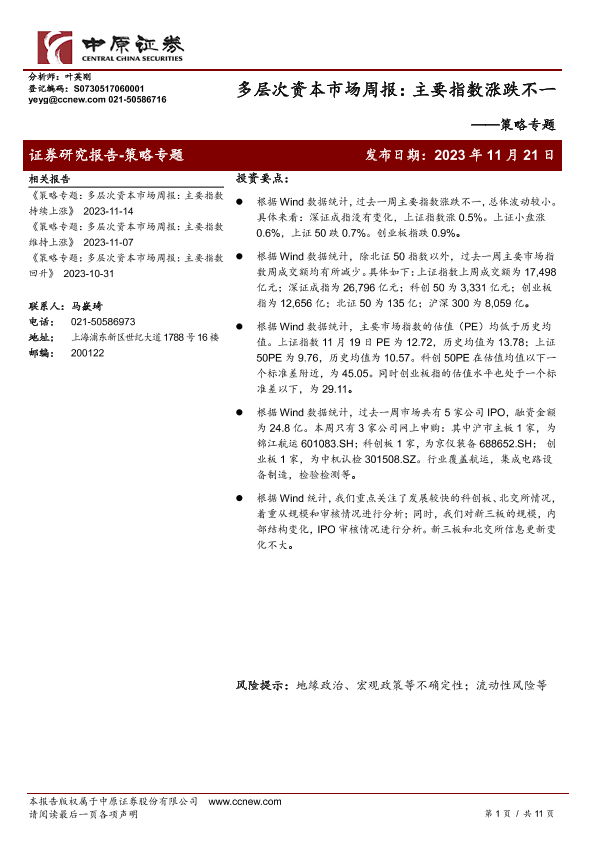 【中原证券】【20231121】策略专题:多层次资本市场周报:主要指数涨跌不一-11页