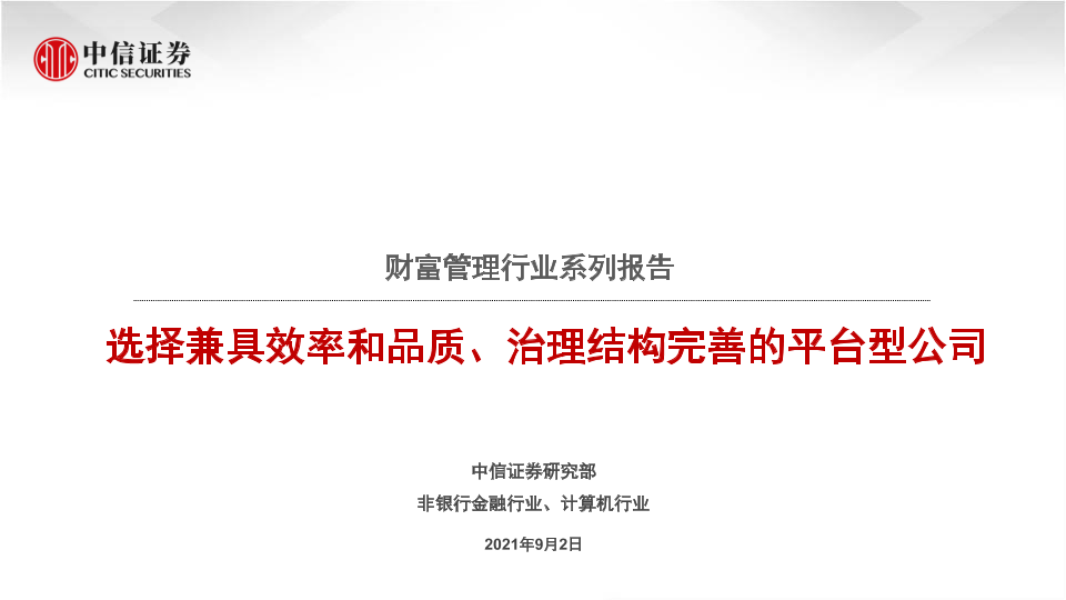 【中信证券】【20210902】财富管理行业系列报告:选择兼具效率和品质、治理结构完善的平台型公司-88页