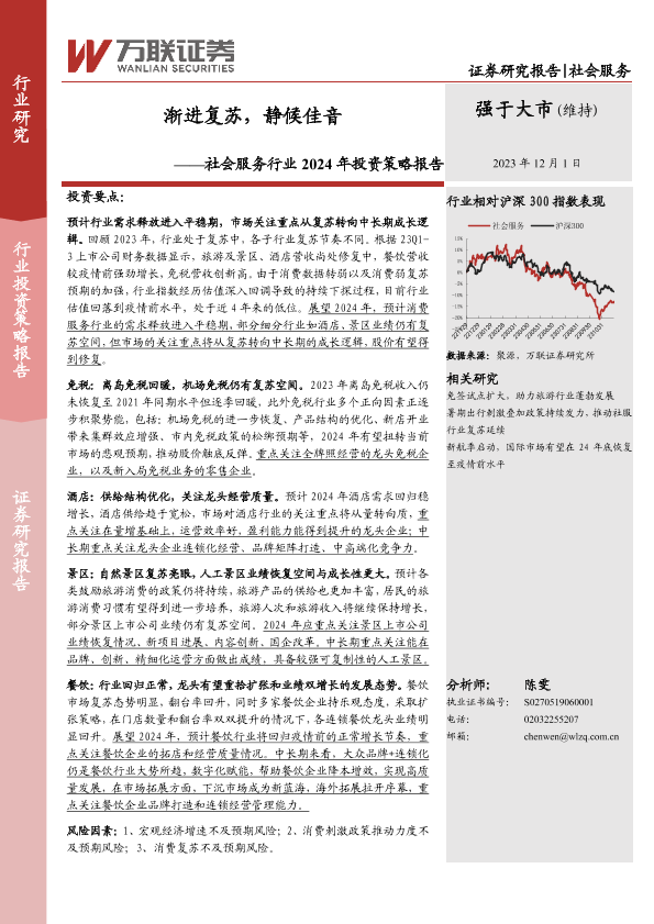【万联证券】【20231201】社会服务行业2024年投资策略报告:渐进复苏,静候佳音-43页