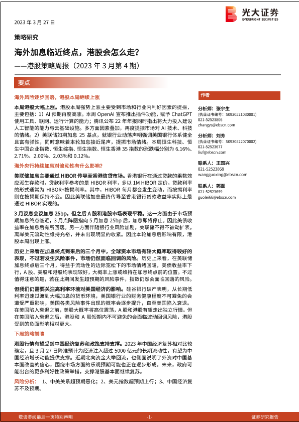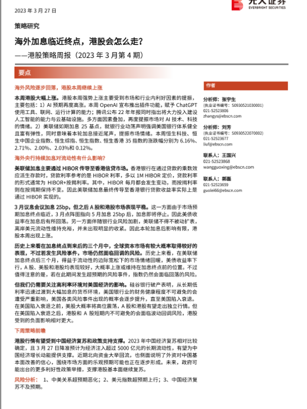 【光大证券】【20230327】港股策略周报(2023年3月第4期):海外加息临近终点,港股会怎么走?-17页