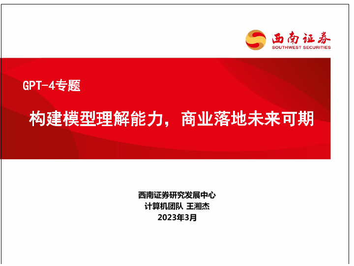 【西南证券】【20230330】计算机:GPT-4专题-构建模型理解能力,商业落地未来可期-48页