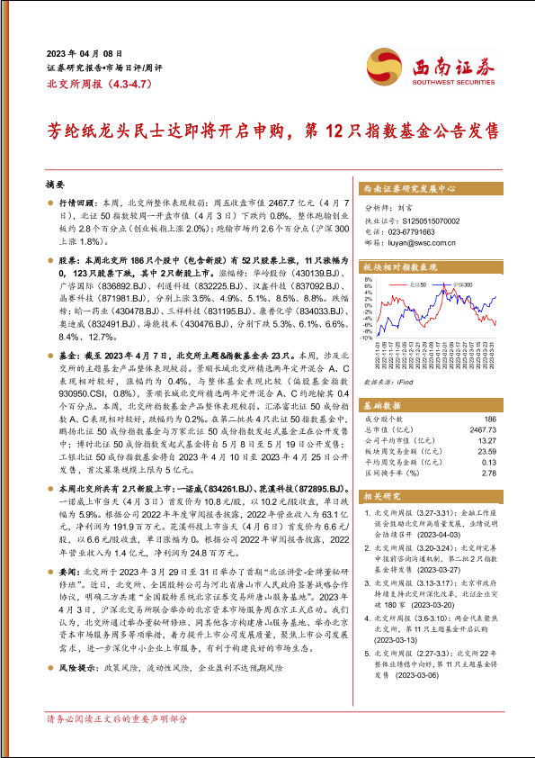 【西南证券】【20230408】北交所周报:芳纶纸龙头民士达即将开启申购,第12只指数基金公告发售-21页