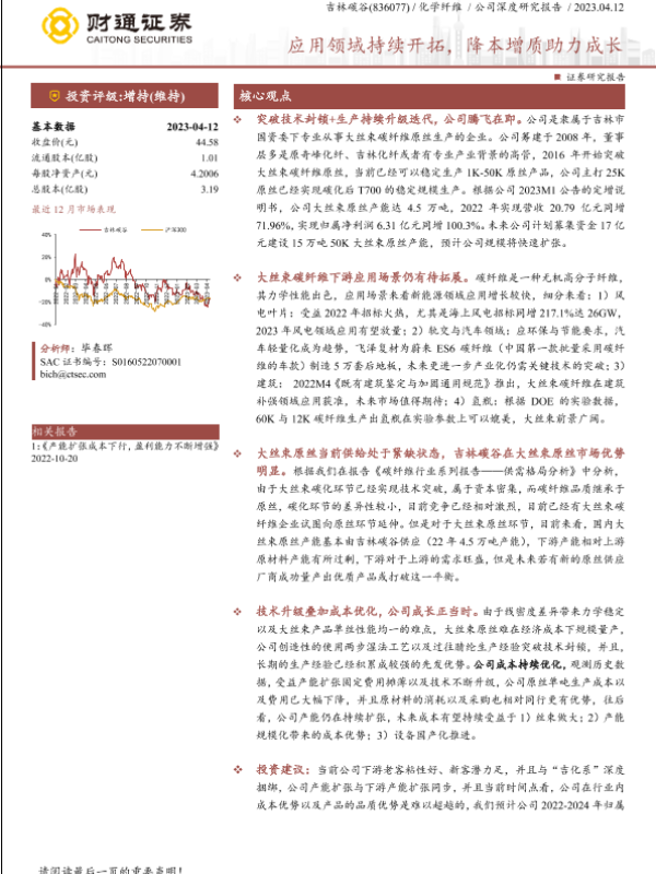 【财通证券】【20230412】吉林化纤(000420)应用领域持续开拓,降本增质助力成长-32页