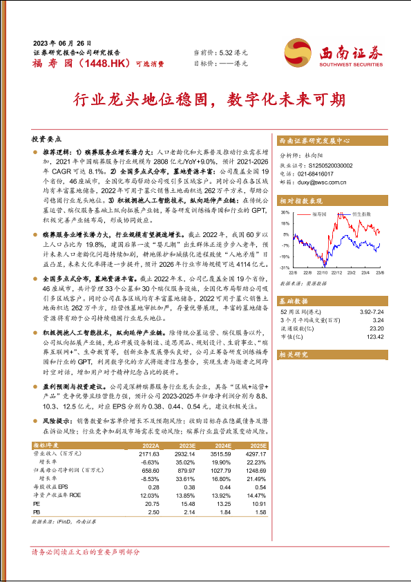【西南证券】【20230626】福寿园(01448)行业龙头地位稳固,数字化未来可期-34页
