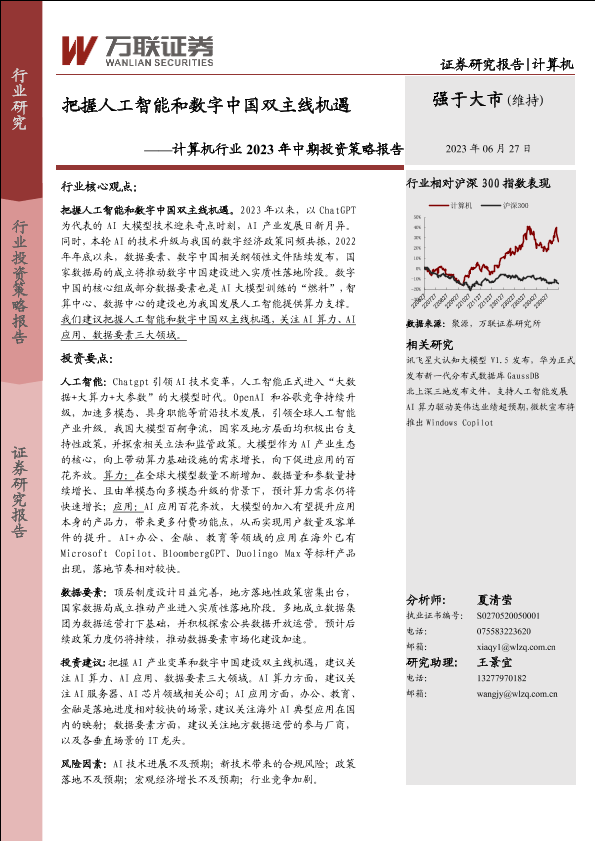 【万联证券】【20230627】计算机行业2023年中期投资策略报告:把握人工智能和数字中国双主线机遇-36页
