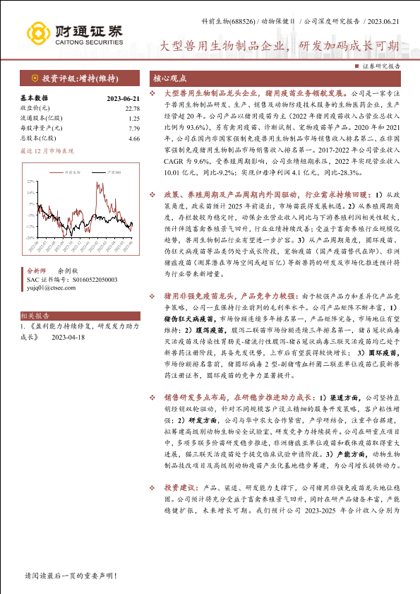 【财通证券】【20230621】科前生物(688526)大型兽用生物制品企业,研发加码成长可期-34页