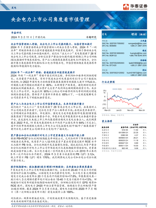 【华泰证券】【20240311】发电行业专题研究:央企电力上市公司角度看市值管理-26页