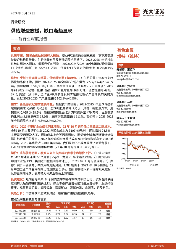 【光大证券】【20240312】铜行业深度报告:供给增速放缓,缺口渐趋显现-48页