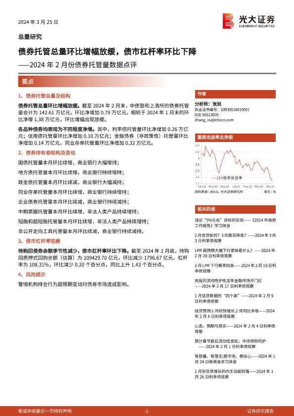 【光大证券】【20240325】2024年2月份债券托管量数据点评:债券托管总量环比增幅放缓,债市杠杆率环比下降-11页