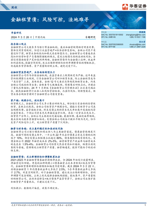 【华泰证券】【20240326】固收专题研究-金融租赁债:风险可控,洼地难寻-19页