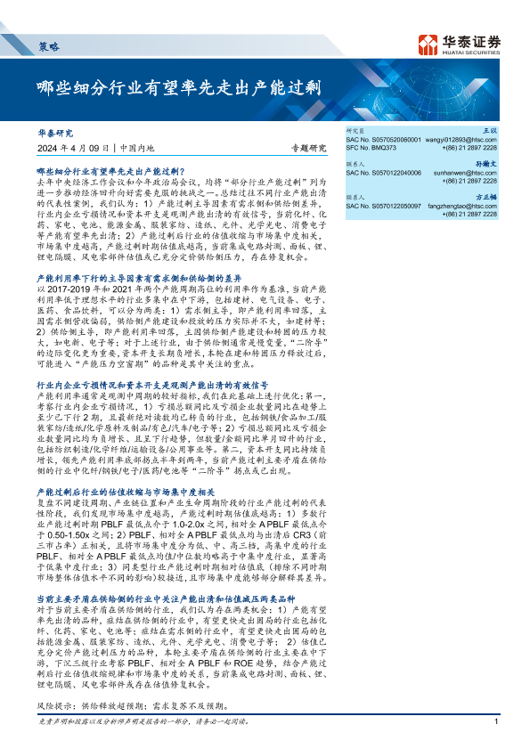 【华泰证券】【20240409】策略专题研究:哪些细分行业有望率先走出产能过剩-19页
