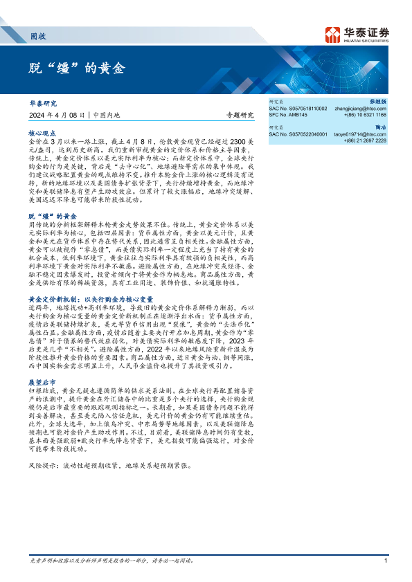 【华泰证券】【20240408】固收专题研究:脱“缰”的黄金-10页