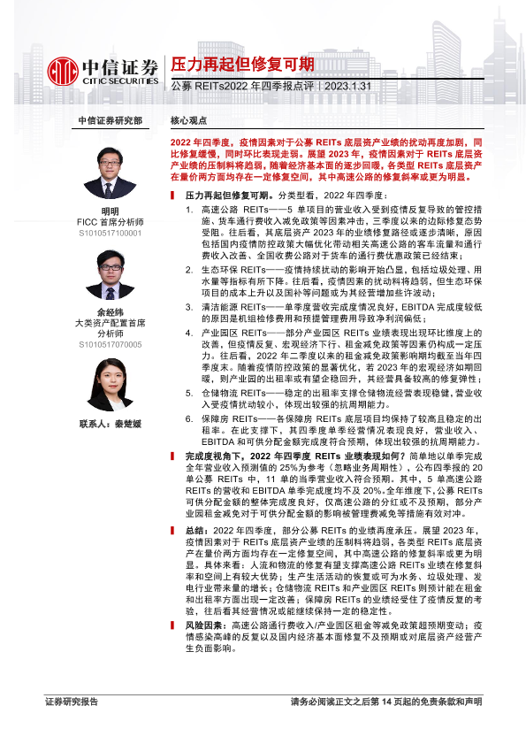 业绩修复 四季报点评 投资分析 疫情影响 公募REITs
