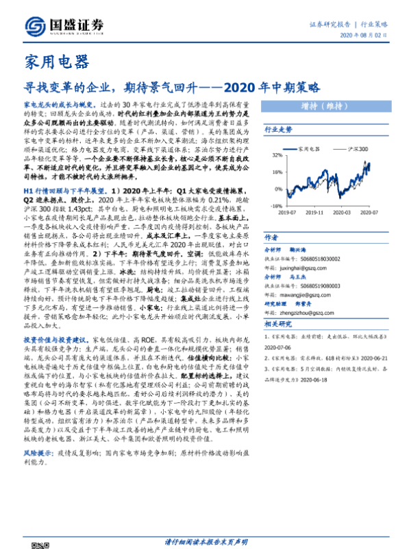 【国盛证券】【20200802】家用电器2020年中期策略:寻找变革的企业,期待景气回升-33页