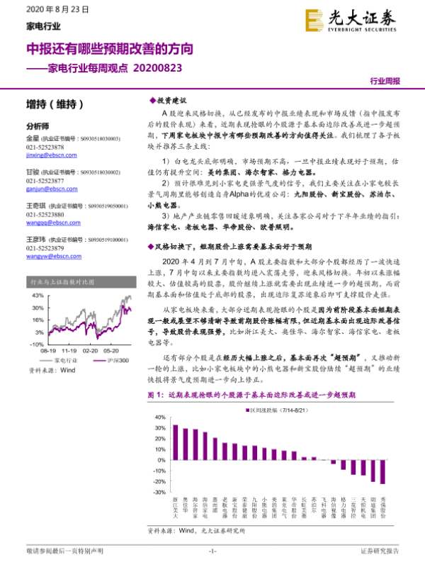 【光大证券】【20200823】家电行业每周观点:中报还有哪些预期改善的方向-7页